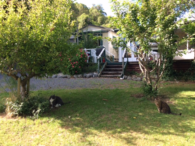 いつもはモーテルの仕事で大忙しなのですが、今年は仕事なし。引っ越し先にて、サムは外の庭仕事、私は家の中の掃除や整理で毎日忙しくしています。が、自分たちの生活向上のためなので楽しんでやってます。カイコウラの町への道路が開通したのでサムと二人で9ホールのゴルフも再開。少し余裕が出てきました。引っ越し先は、何だか長く住んでいたような気がするくらい落ち着く場所で、心地よく過ごしています。ただ、シャワーだけでお風呂がないので、時々自宅(モーテル)のお風呂に入りに出かけてます。猫たちも新しい家でキャットドアも使えるようになってきました。だんだん慣れてきてハッピーな様子です。