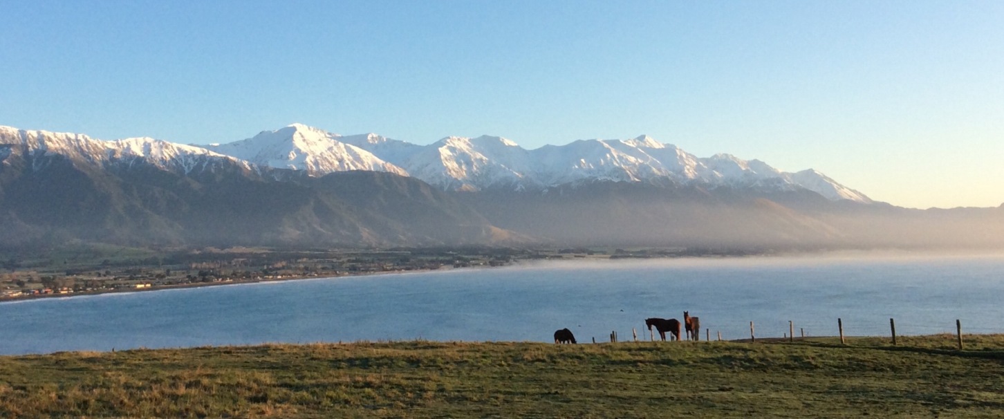 皆さん、管理人さん、お久しぶりです。こちらは、春です。少しずつ暖かくなってきていますが、まだ寒い日もあり、山に雪が新しく積もったりもしています。ラグビーW杯が始まり、日本が南アフリカを破り大金星!!こちらでも話題になっています。写真は、カイコウラの友人宅からの景色。青い海と青い空&雪山。馬もいますよ~。クリックして大きくしてみてみて下さい。